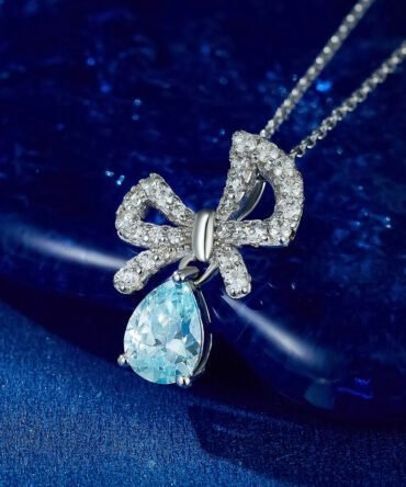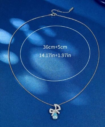 925 Sterling Silver Blue Crystal Bow Pendant Necklace in Platinum Color