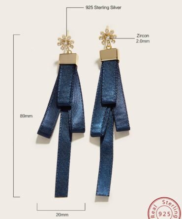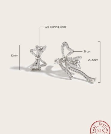 925 Silver Diamond Butterfly Bow Asymmetrical Earrings Set
