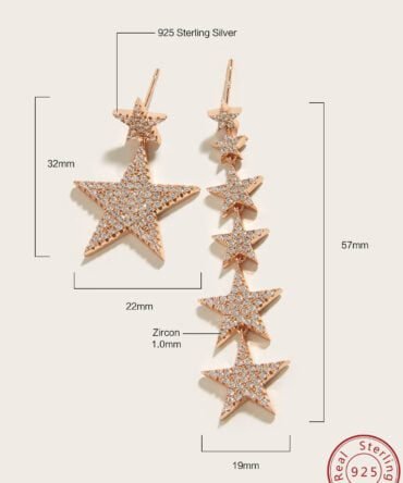 925 Sterling Silver Gold-Plated Asymmetrical Star Earrings with Diamonds – Unique and Elegant Gift Set