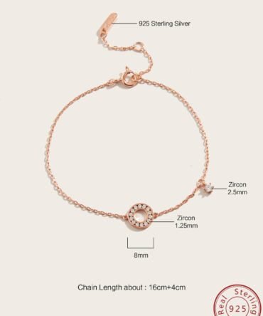 High-Quality Zircon Rose Gold Bracelet with 925 Silver Champagne-Colored Chain
