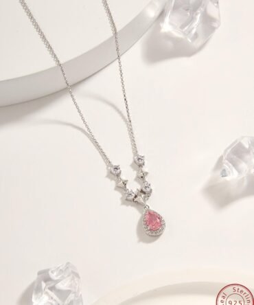 Stunning Pink High Carbon Zirconia Platinum Necklace