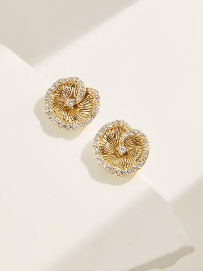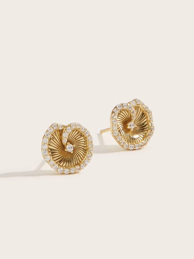 One Pair of S925 Sterling Silver Plated with 14K Yellow Gold Floral Halo Stud Earrings for Women’s Wedding