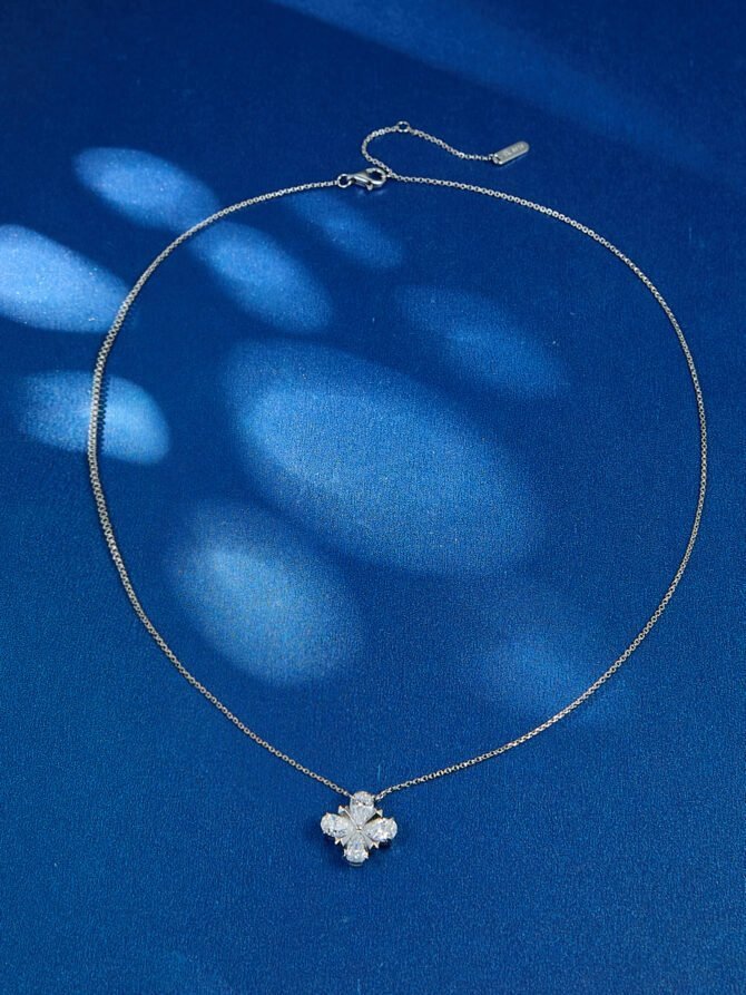 1. Exquisite Design: Crafted with 925 silver, this clover crystal pendant necklace showcases a delicate four-leaf clover design, symbolizing luck and fortune.