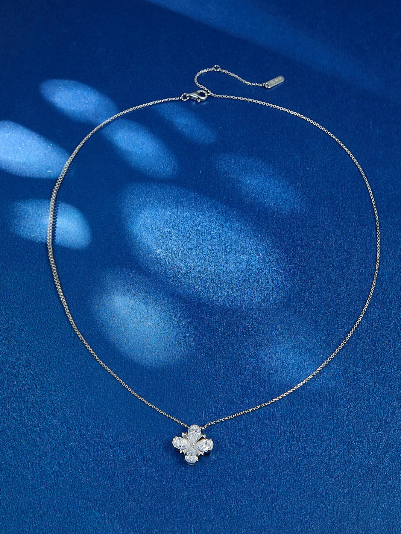 925 Silver Clover Crystal Pendant Necklace in Platinum Color