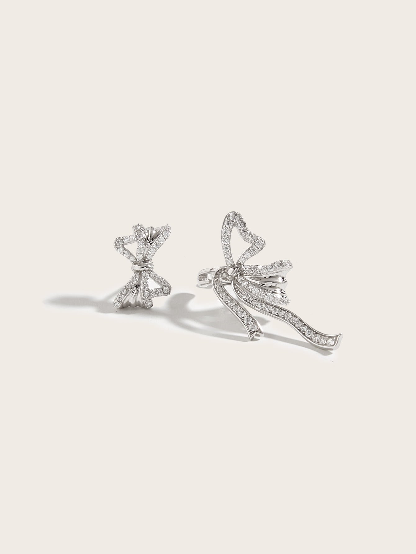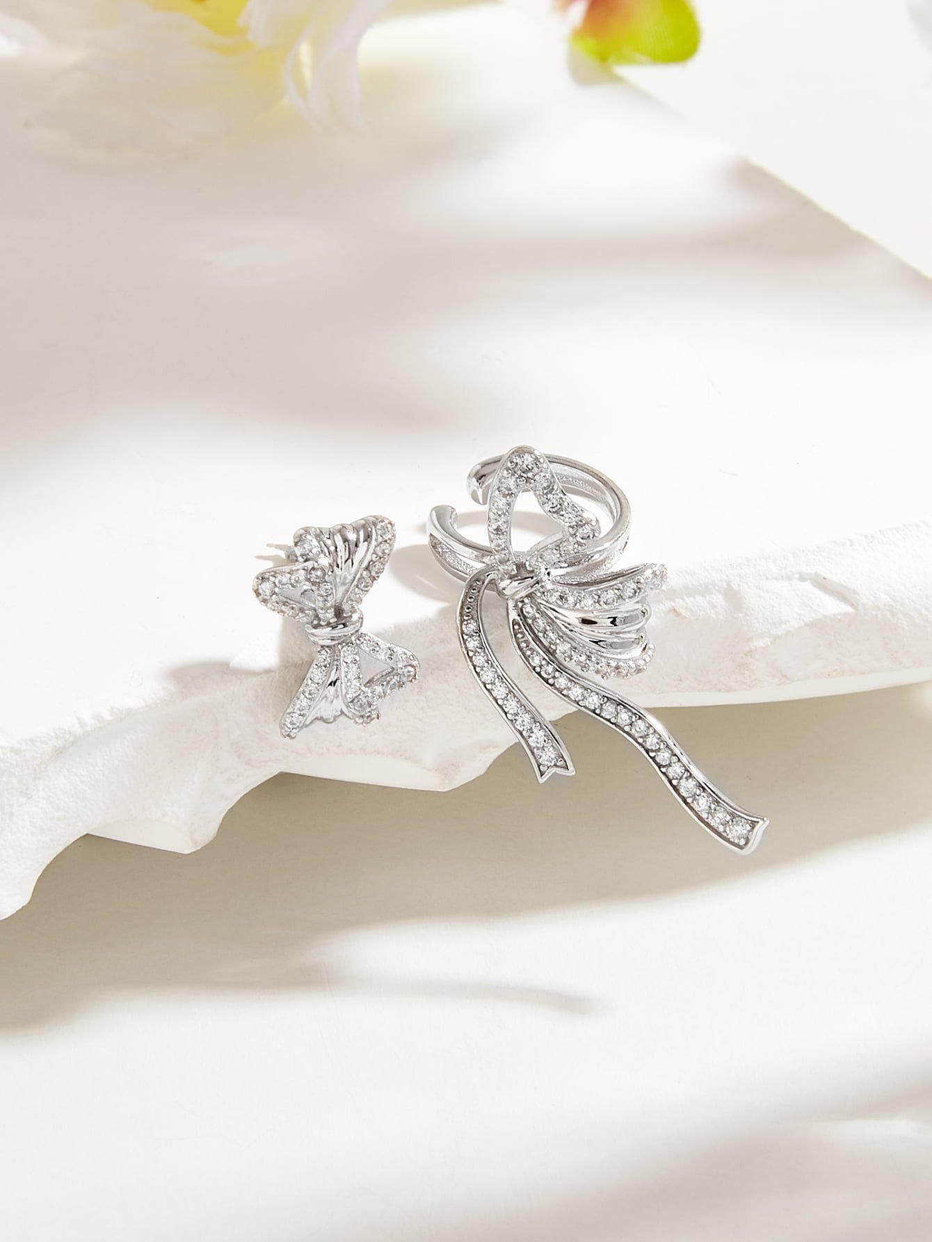 925 Silver Diamond Butterfly Bow Asymmetrical Earrings Set 有 1 个评价