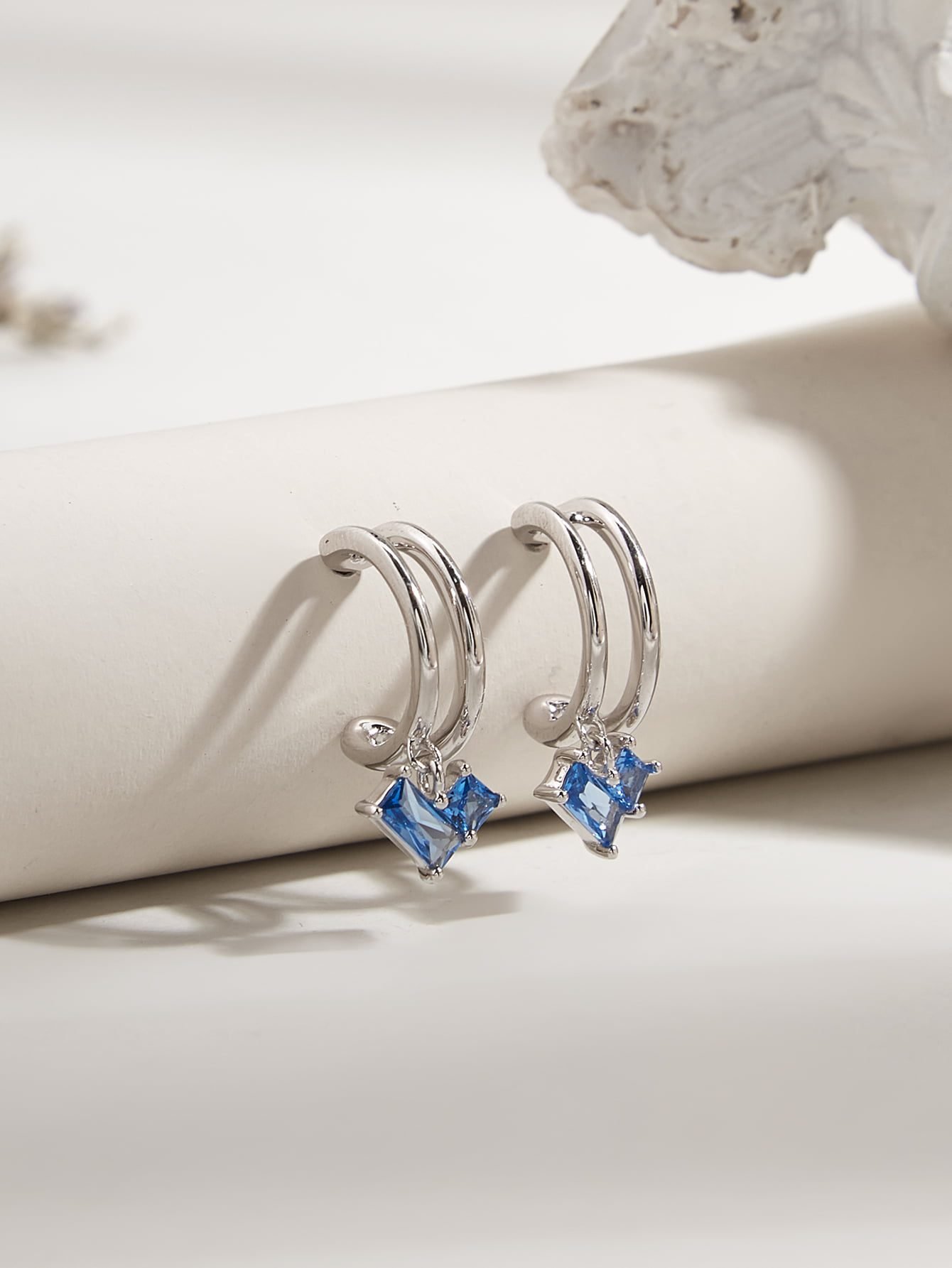 成为第一个“925 Sterling Silver Blue Sapphire Hollow Out Design Earrings Set for Women, Wedding, Gift” 的评价者