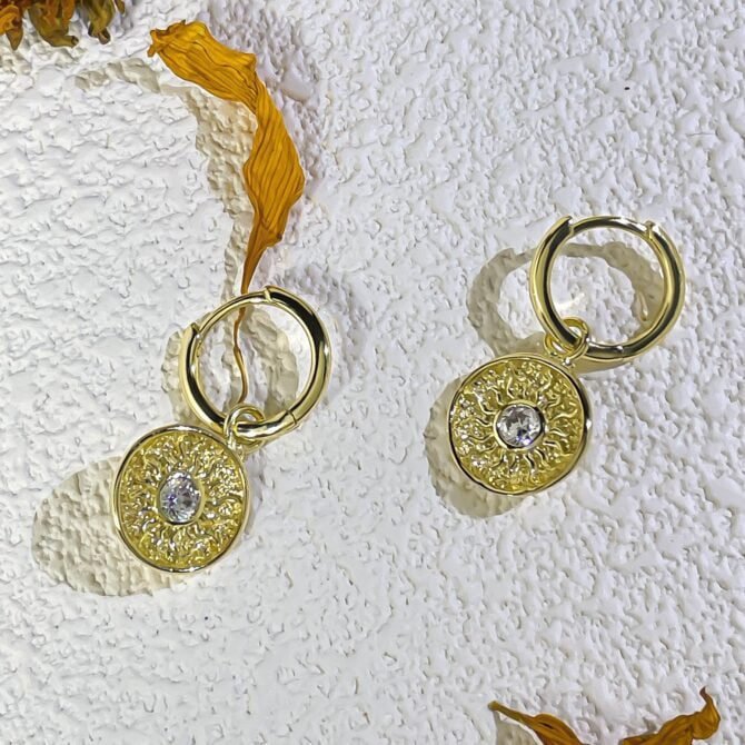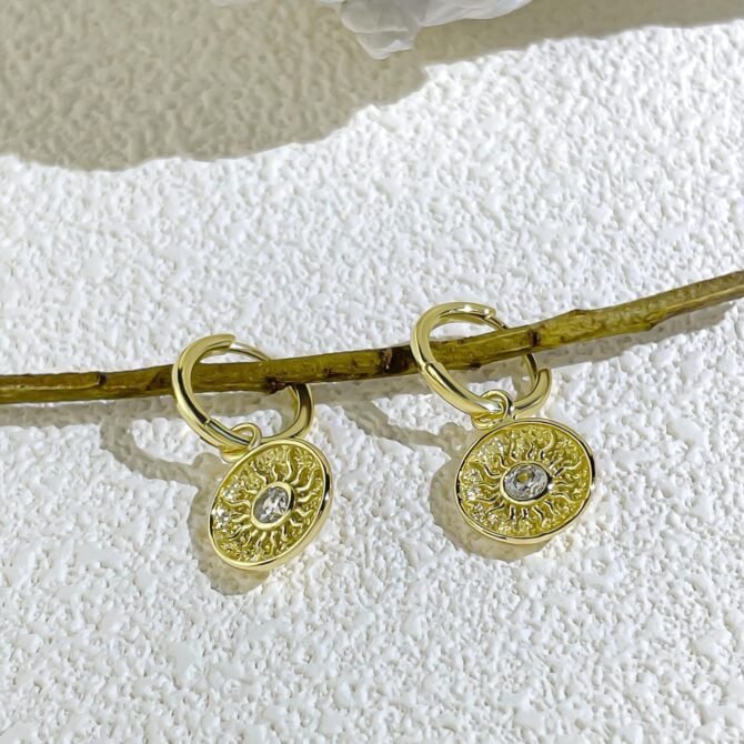 When you wear our Sparkling Sun Diamond Earrings, you’ll instantly create an alluring atmosphere wherever you go. The combination of the sun design and the shimmering diamonds will draw attention and spark conversations. These earrings are a true statement piece that will make you stand out from the crowd and leave a lasting impression.