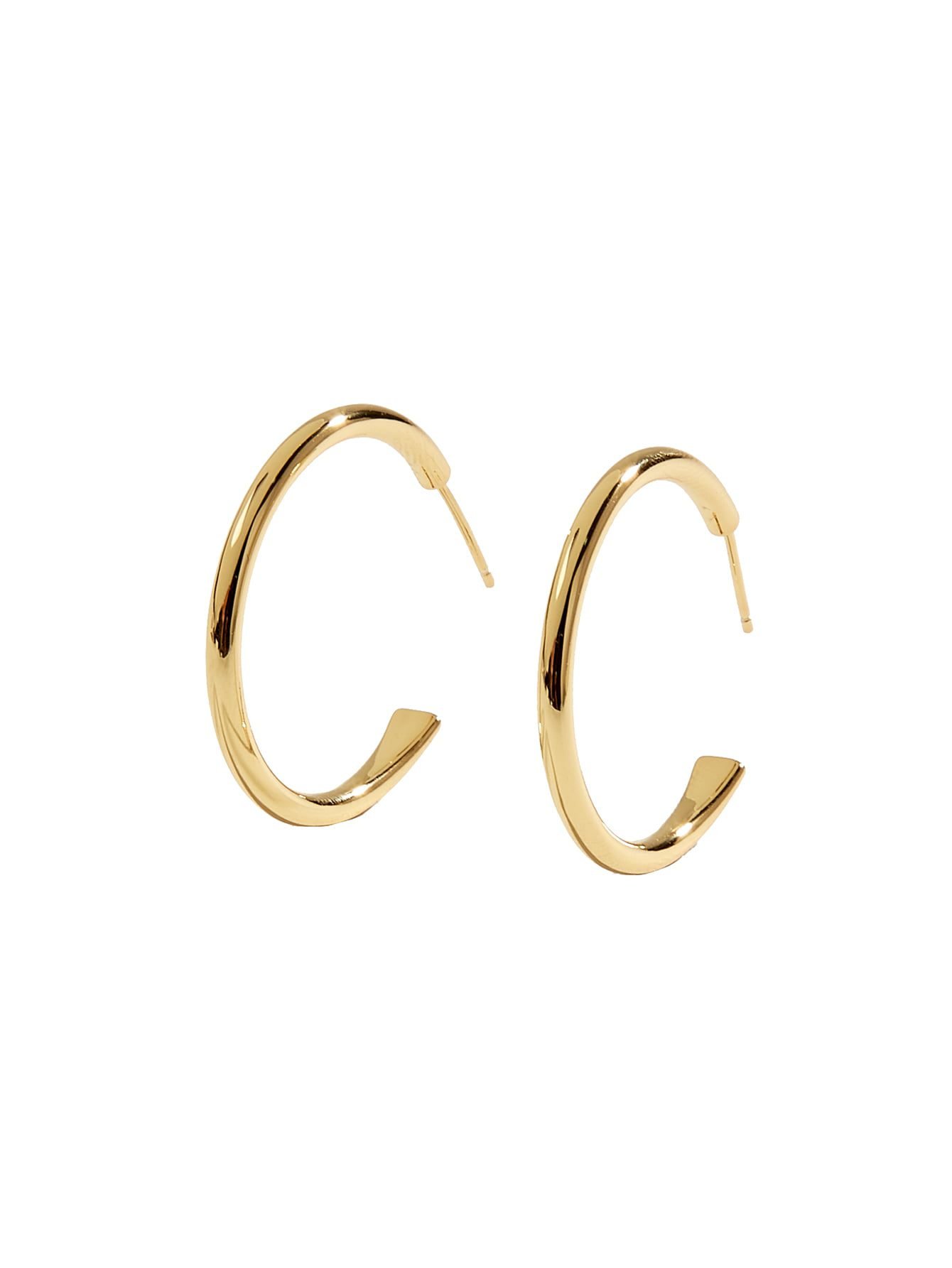 Featuring a simple and plain design, these hoop earrings offer a timeless and versatile look that can be effortlessly paired with any attire. The gold-plated finish adds a touch of luxury and elegance, making them suitable for both formal and casual occasions.