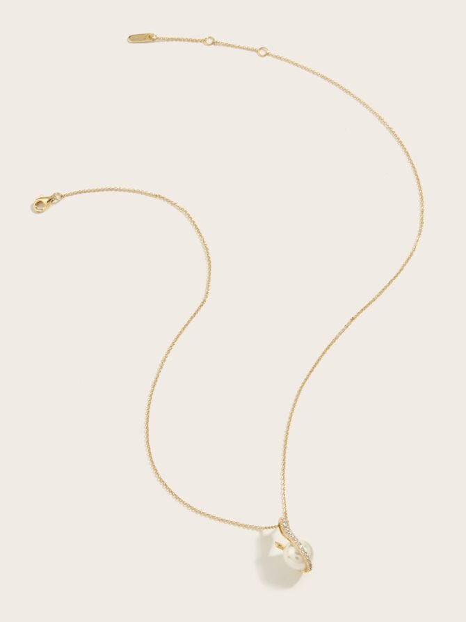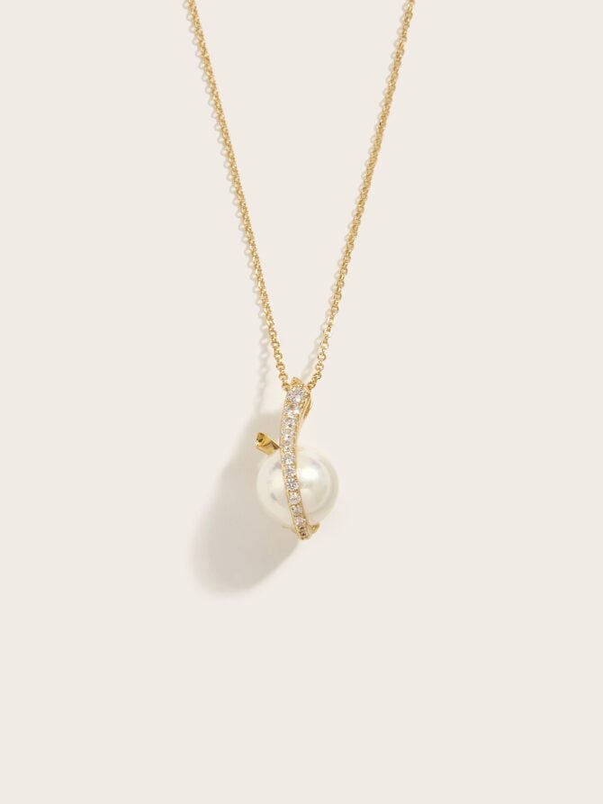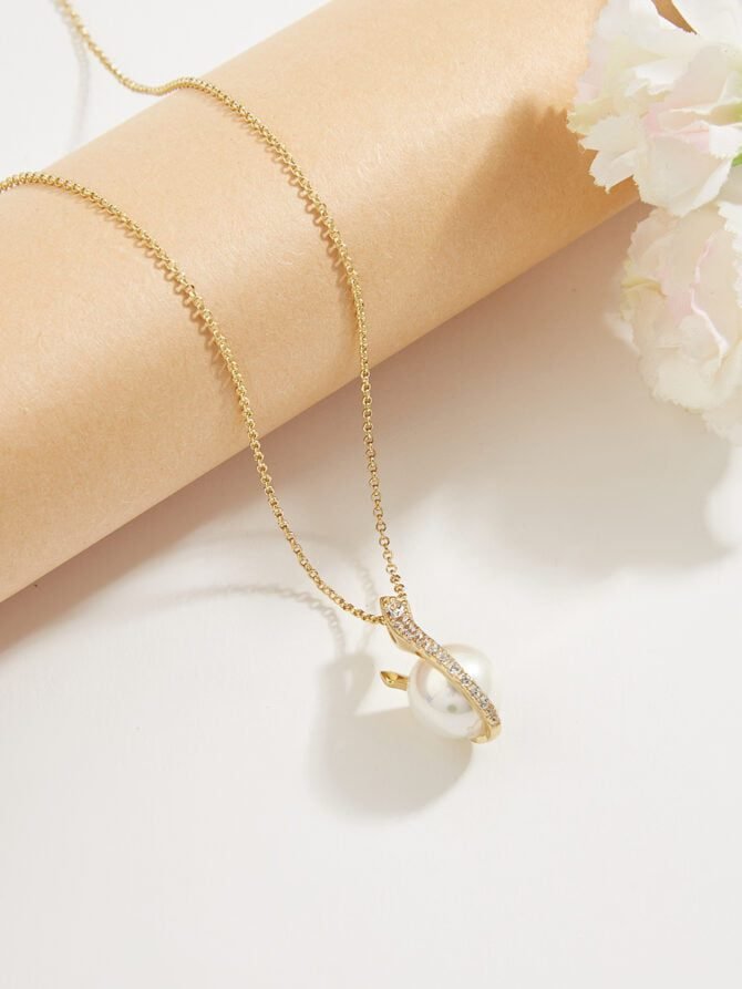 Elevate your style with our high-quality pearl and zirconia inlaid necklace. Order yours today and experience the timeless elegance it brings to any ensemble.