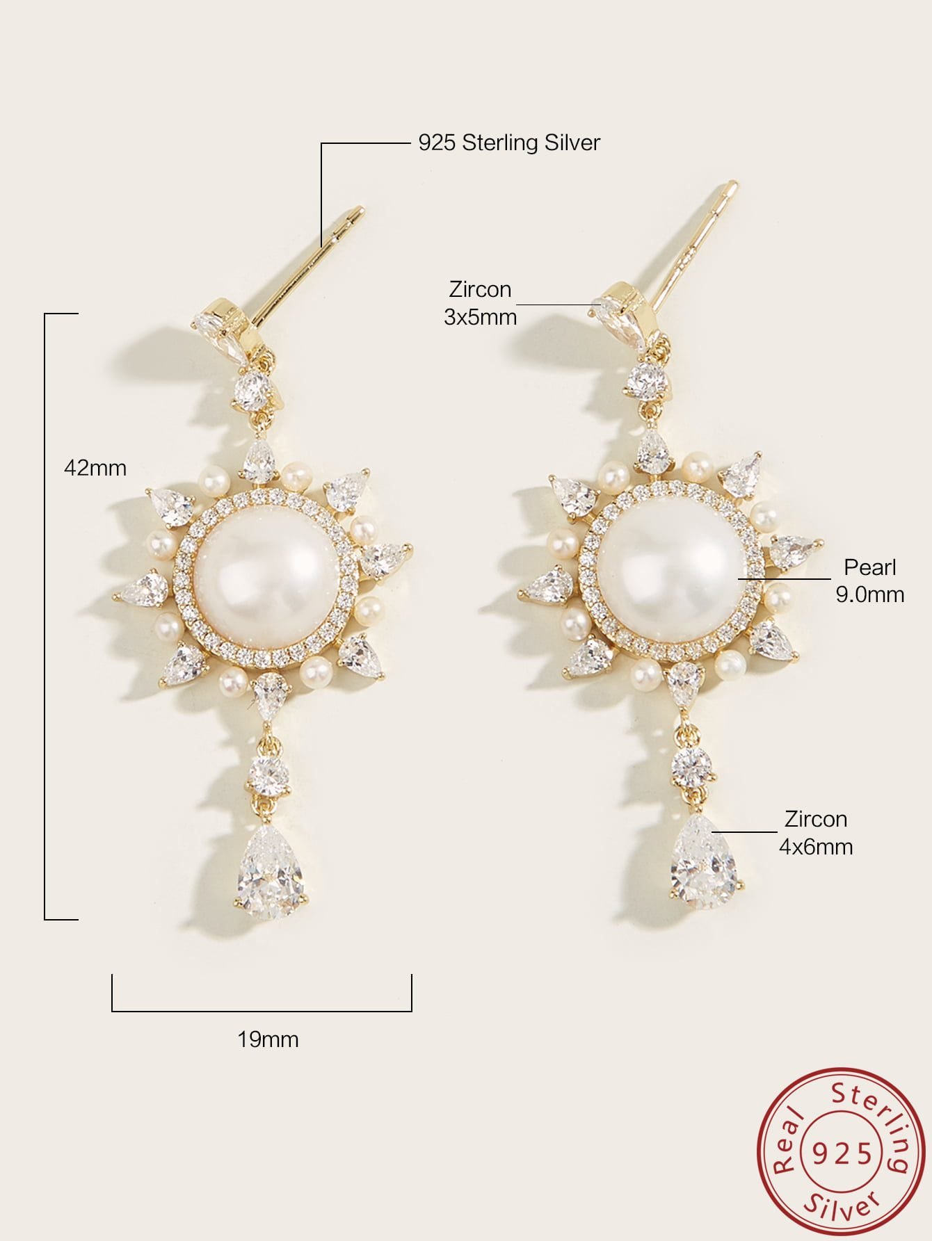 Exquisite Multi-Pearl Diamond Earrings with 925 Silver Setting