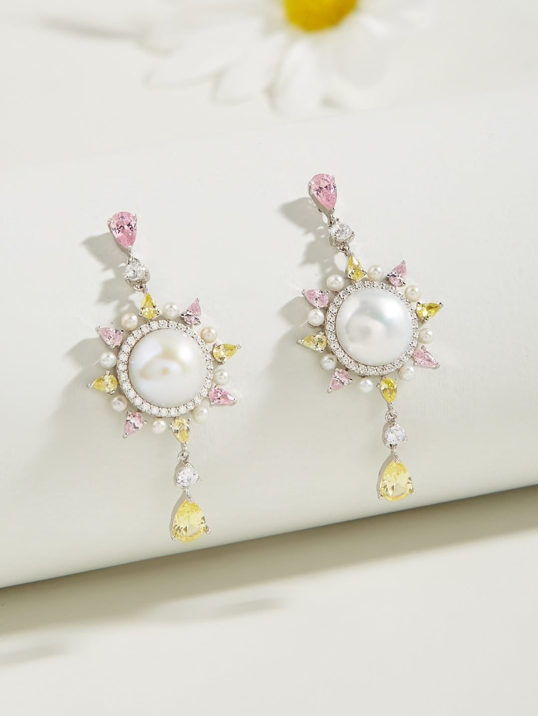 Indulge in the sophistication of our exquisite pair of earrings, meticulously designed to captivate and enhance any occasion. Made with the finest materials, including multi-pearls, 925 silver, and genuine diamonds, these earrings epitomize luxury and elegance.